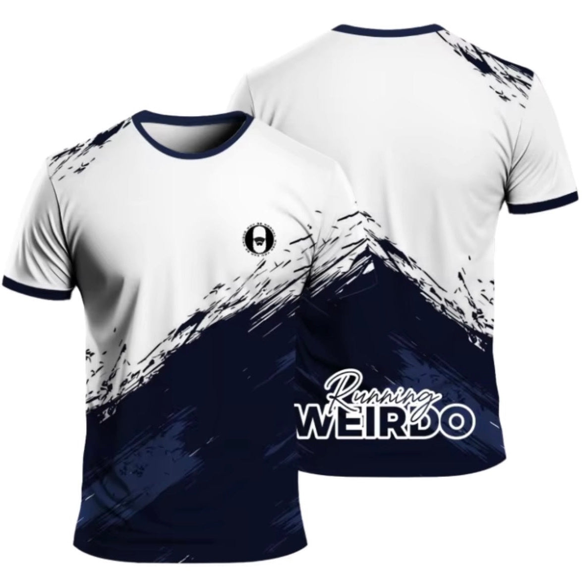 Bold graphic print that refuses to blend in, Running Weirdo face logo on the front, and bold graphic print on the back.