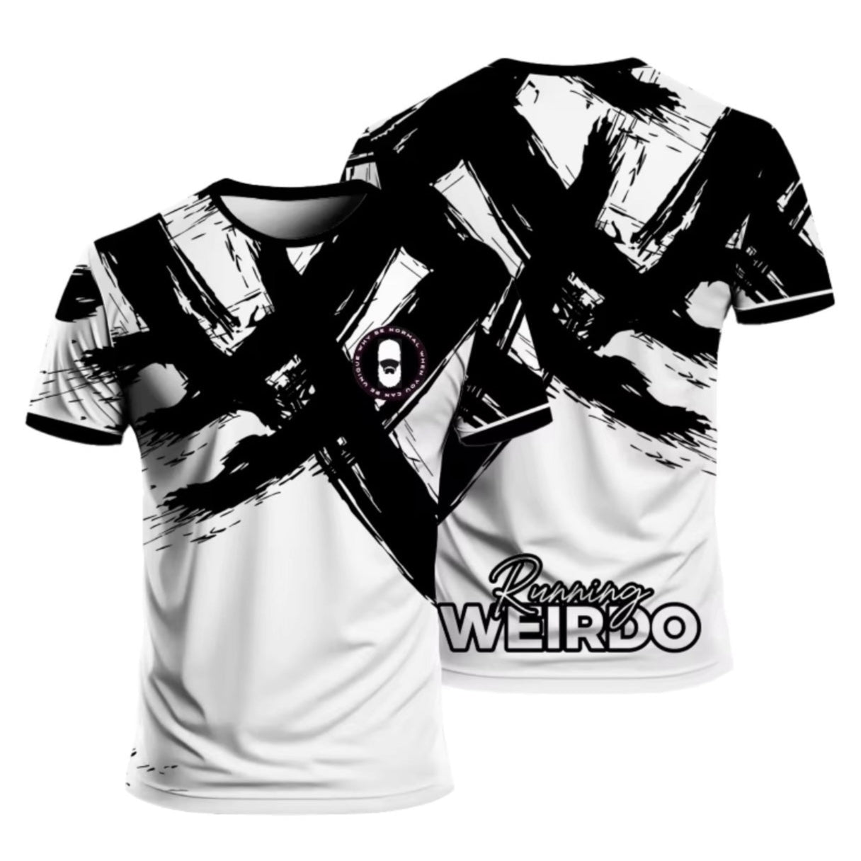 The Crossed Out Tee is more than just a running top, it's a statement. Made from lightweight, breathable broadcloth, it's designed to keep ypu cool while you stand out. With the Running Weirdo face logo on the chest and our bold text logo on the lower back, this tee makes sure they see you coming and remember you going.