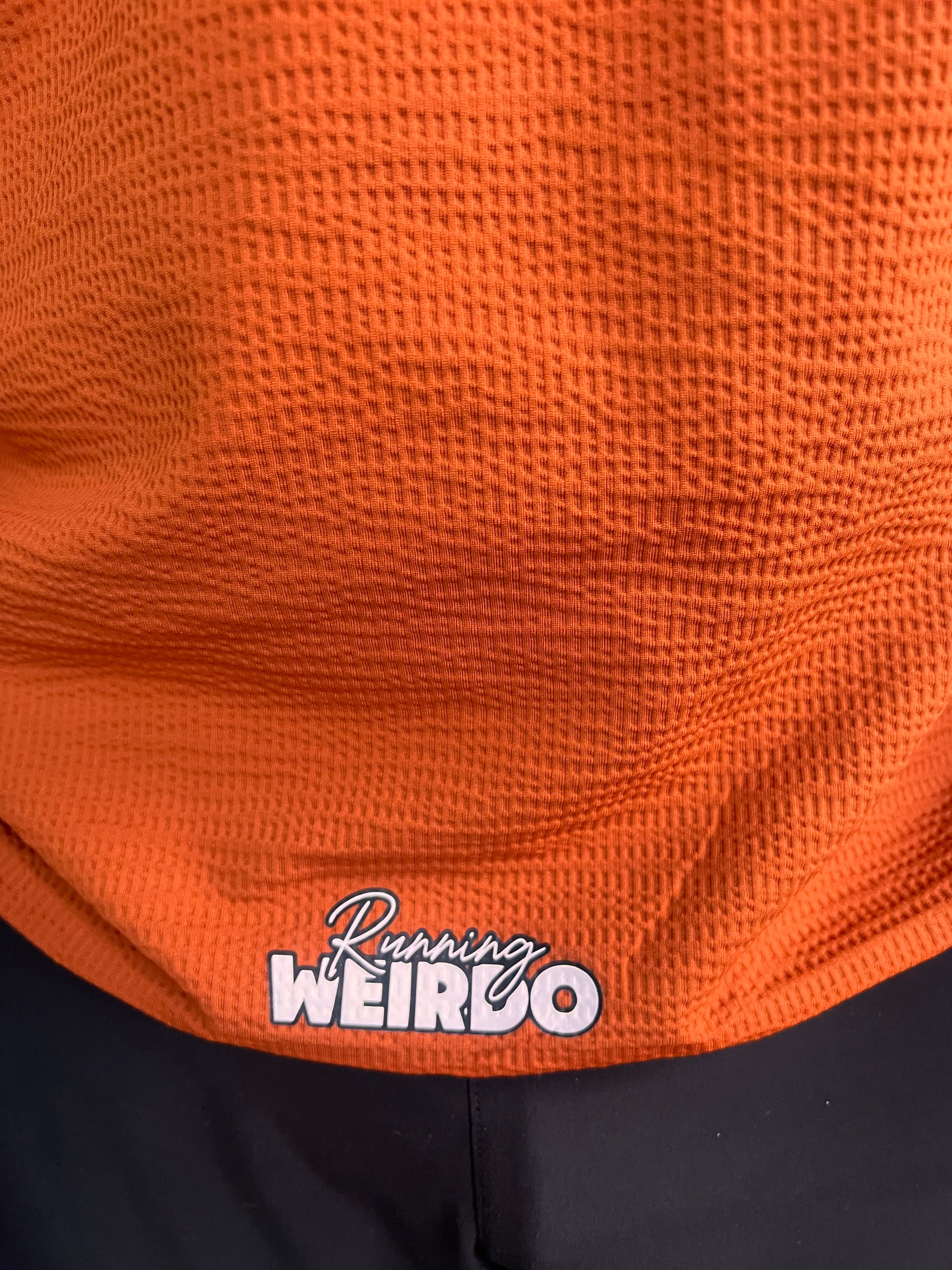 On the front, the lower hem carries the iconic Running Weirdotext logo - clean, bold, and unmistakably weird.
