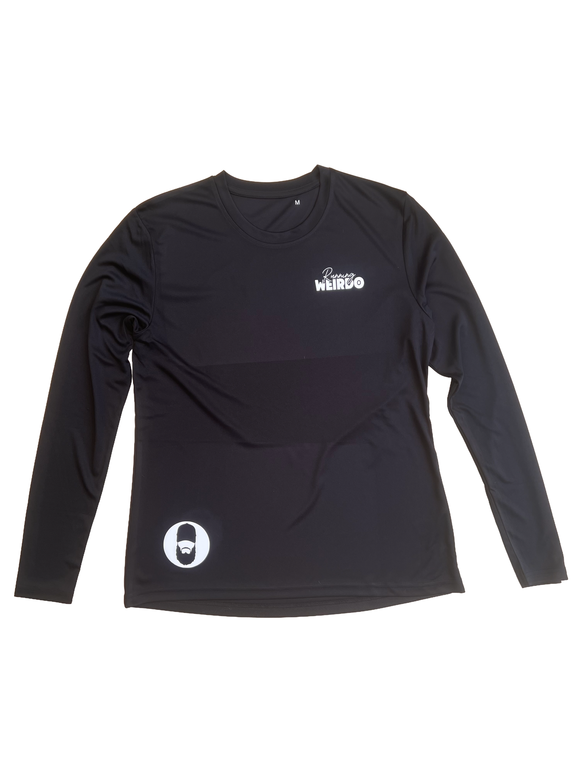The signature Running Weirdo text on the chest makes a statement, while the bold face logo on the hem reminds you that normal was never a goal, with a cheeky wash when dirty stamp on the back. Perfect for cooler runs, race warm ups, or everyday wear, this long sleeve balances performance with standout style.